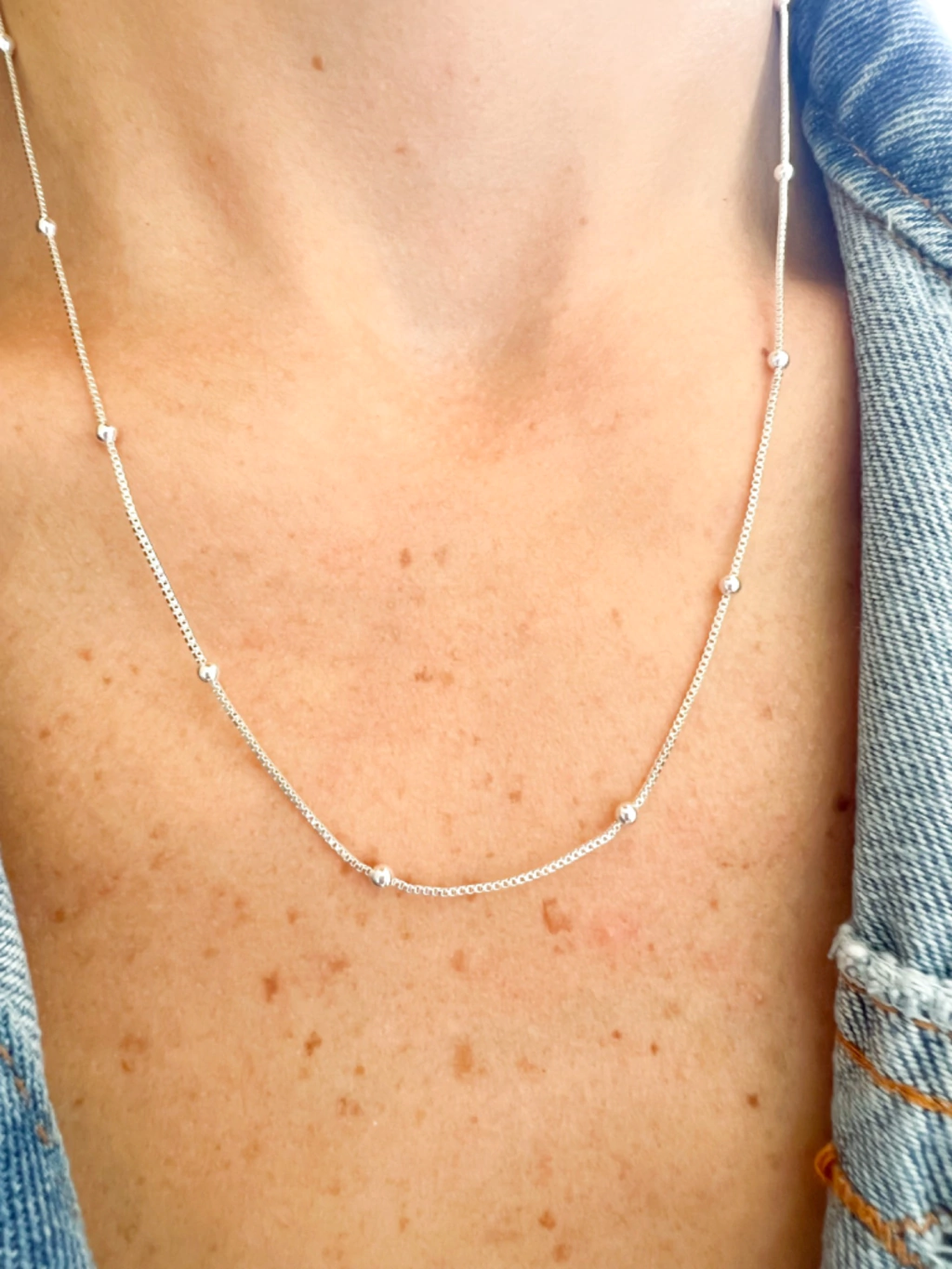 A peça chave pra você compor o mix perfeito! O colar de veneziana com bolinhas é super delicado e casual! Use e abuse dele!