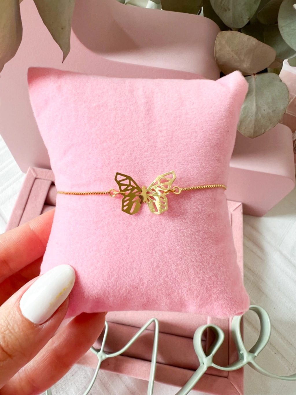 A borboleta representa transformação e renovação. Perfeita para você fazer aquela composição! Com fecho regulável, ela cabe em qualquer pulso!